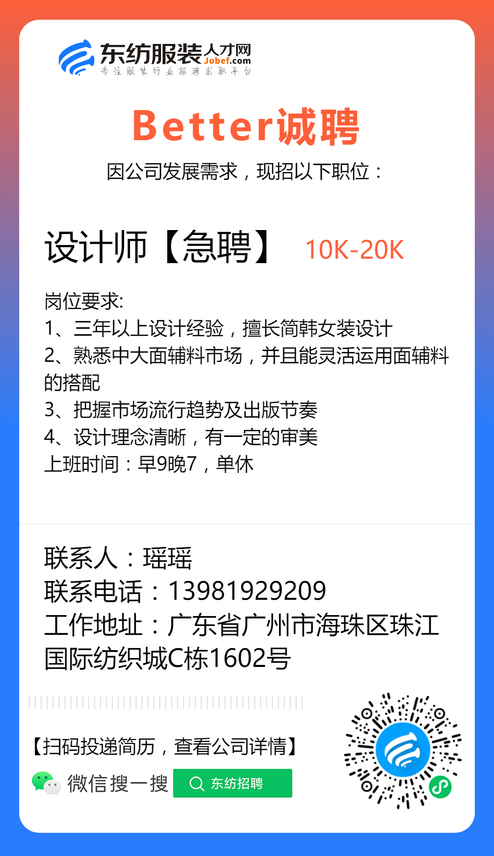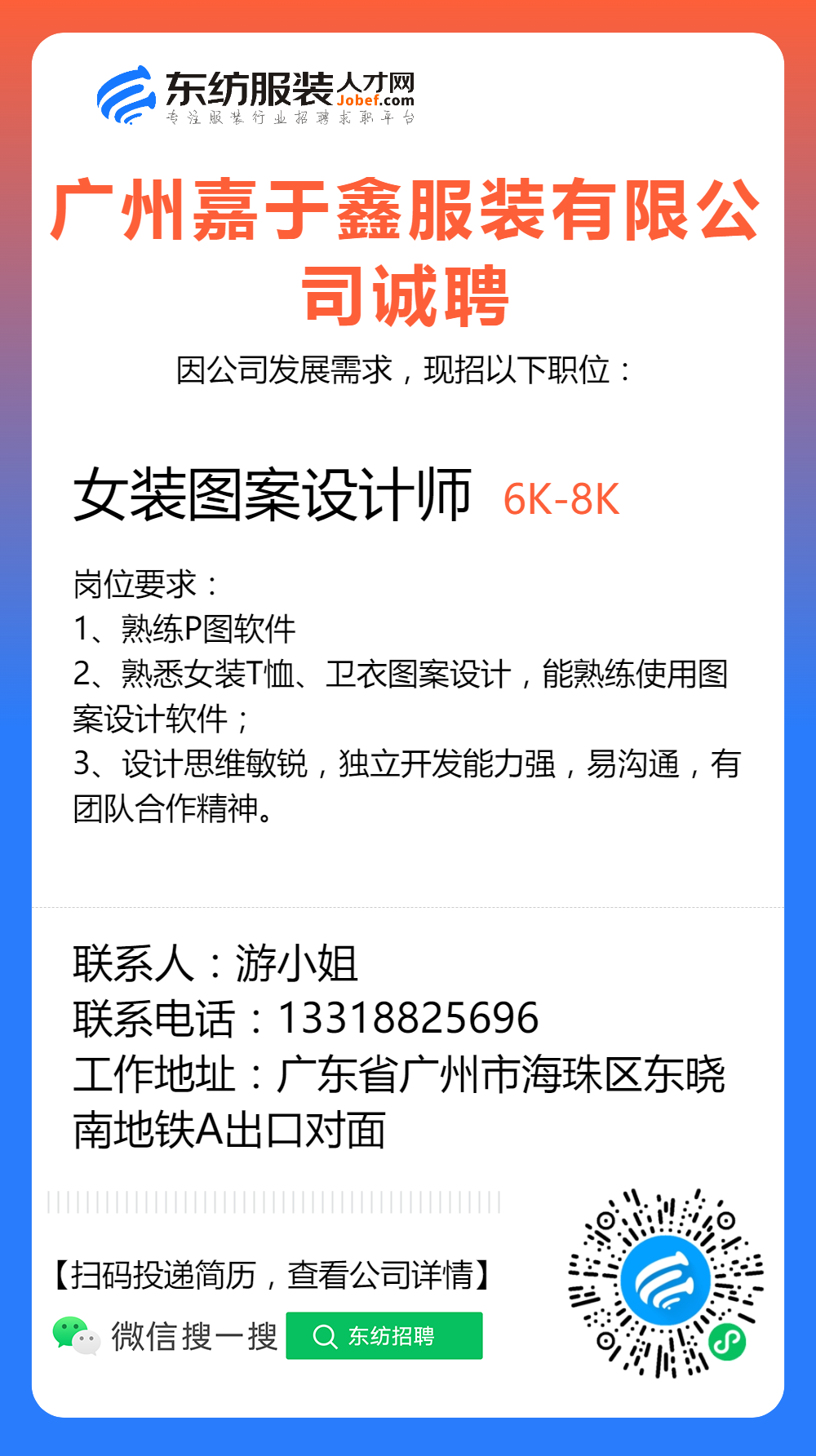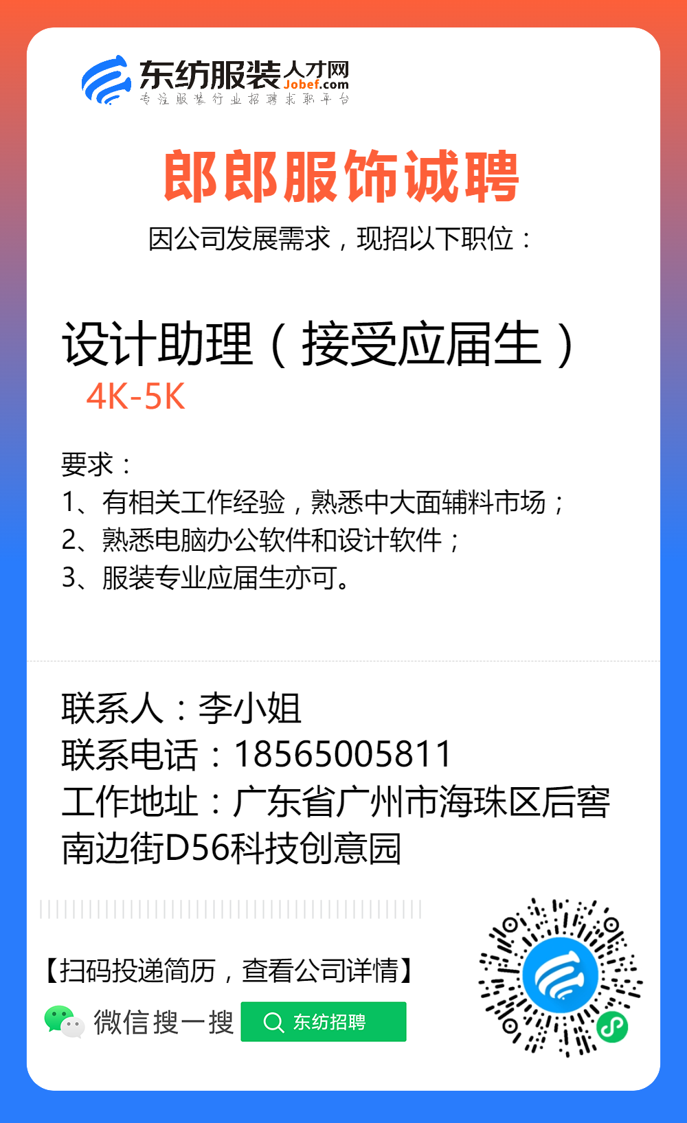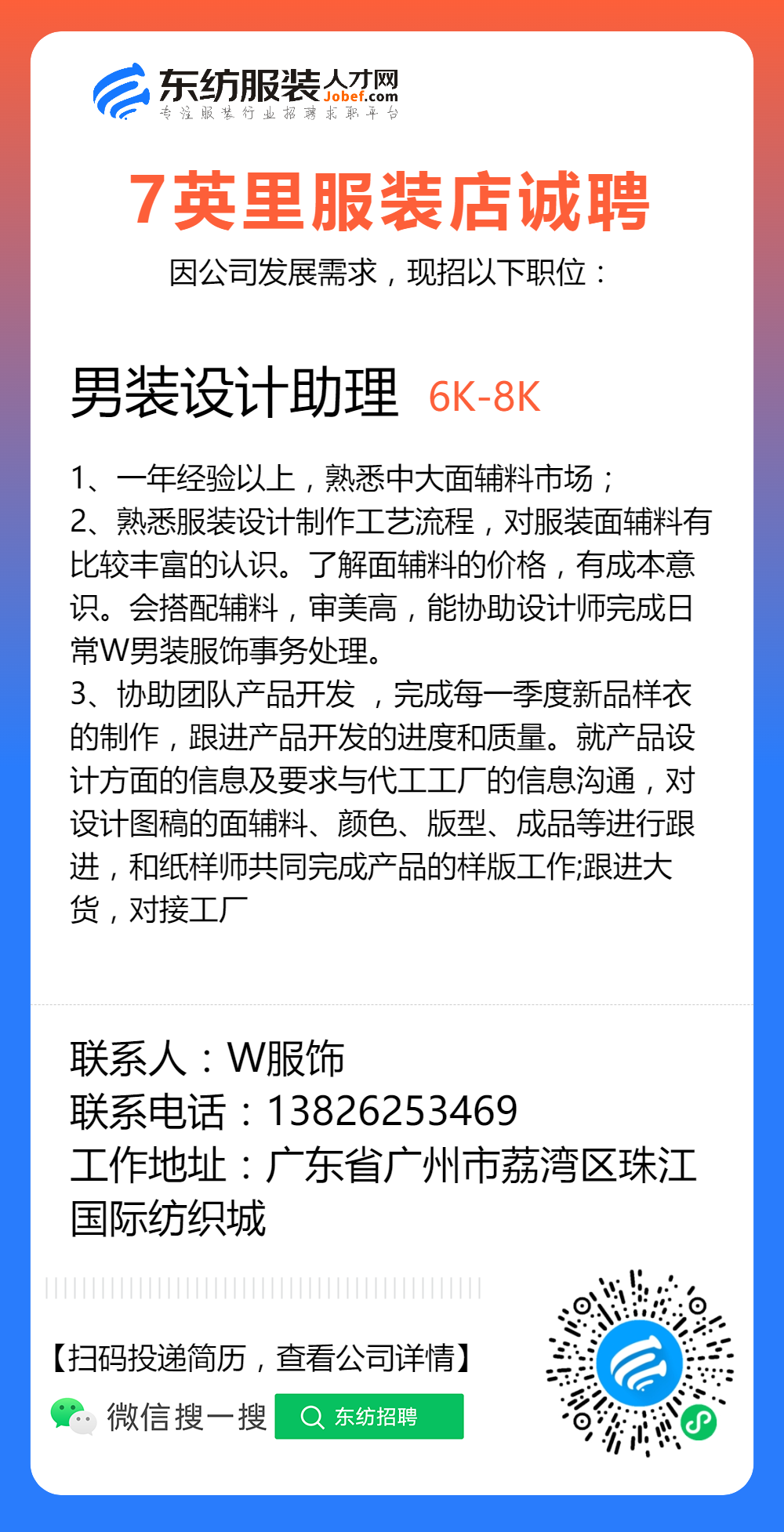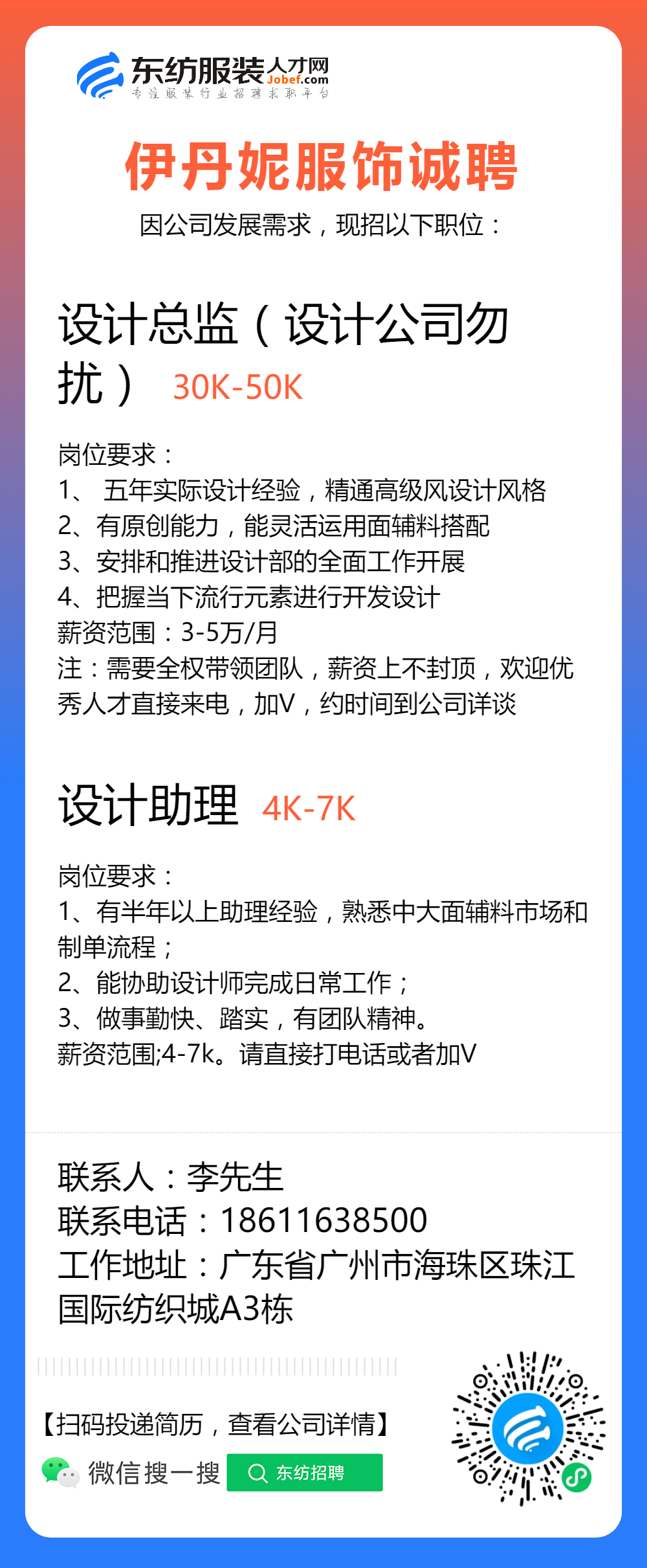 服装招聘·设计类丨2. 19号,女装设计师、男装设计师、童装设计师、设计助理.....