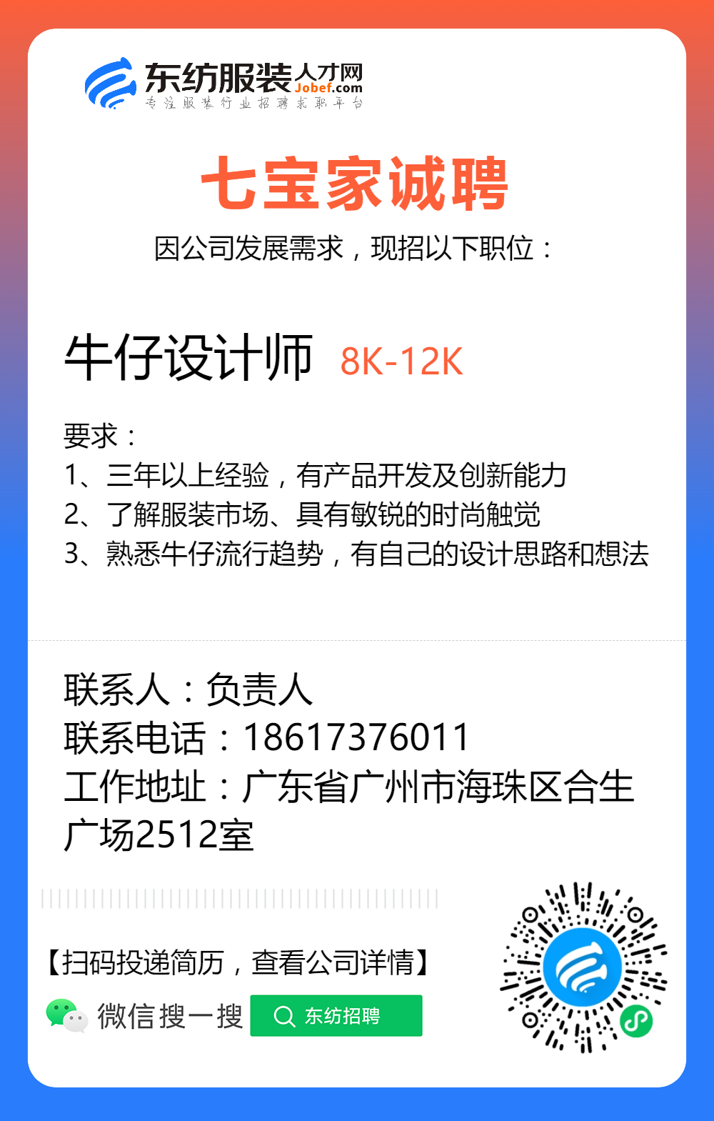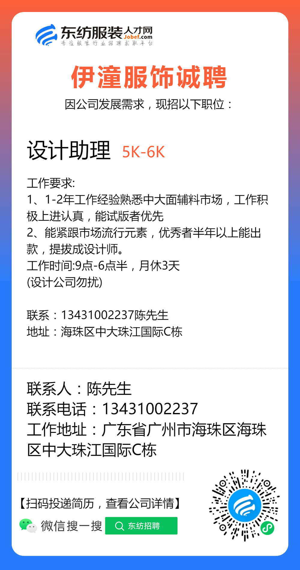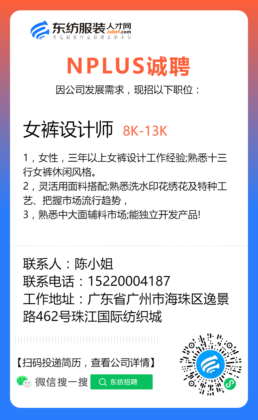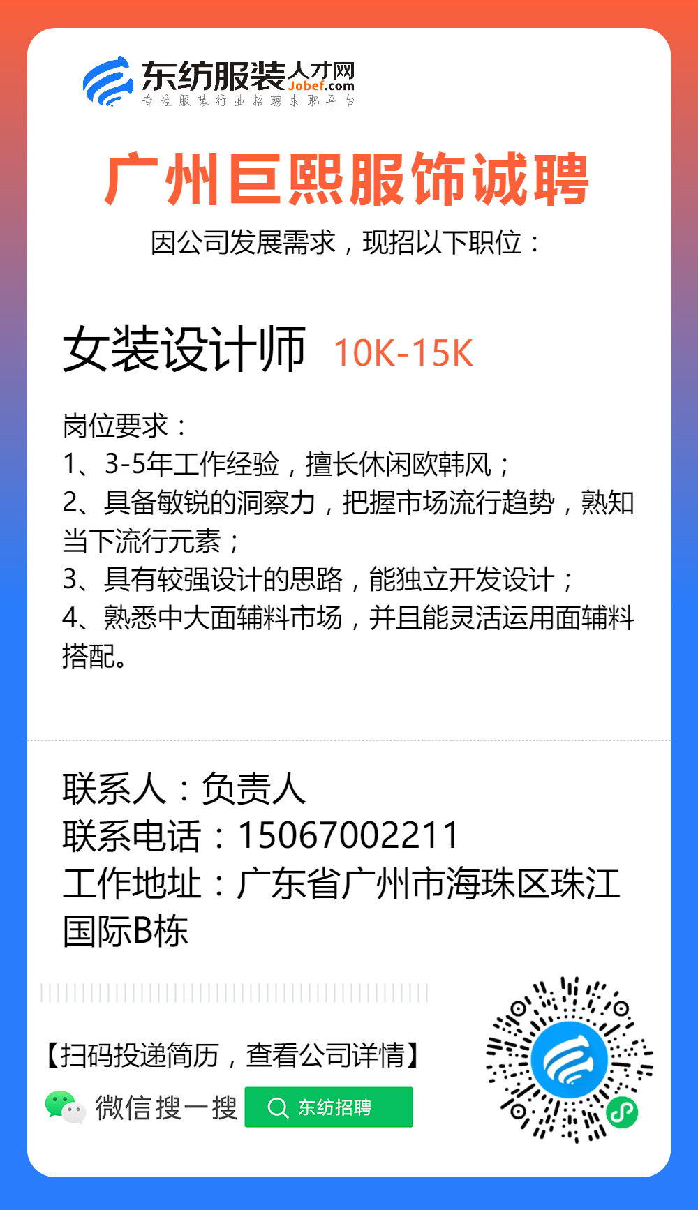 服装招聘·设计类丨2. 19号,女装设计师、男装设计师、童装设计师、设计助理.....