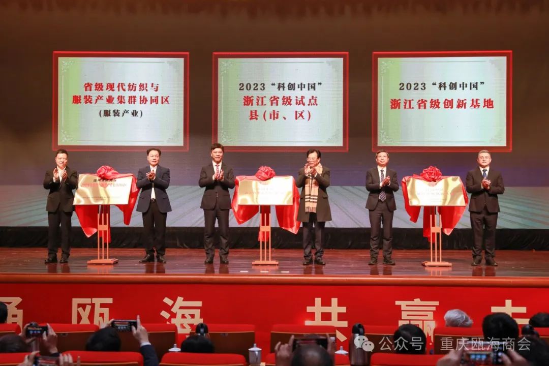 一项项荣誉、一组组数据,勾勒出瓯海高质量发展的动人轨迹,也闪耀出广大企业家、专家学者扎根瓯海、创新创业结出的累累硕果。会上,中国科学院院士、浙江大学温州研究院院长叶志镇与森马集团董事长邱光和致新春贺词。黄标通、夏尔宁、余荣岳、宁作彦、陈铮、王树民等人才、企业家代表分别进行交流发言。会议表彰了2023年度人才科技工作获奖代表,为获“突出贡献”“首超 10 亿元、20 亿元”“做大做强做优”“创新发展”“两个健康”“雁阵培育行动”“新消费经济”等荣誉的企业授牌,为2023“科创中国”浙江省级试点县(市、区)、2023“科创中国”浙江省级创新基地、省级现代纺织与服装产业集群协同区(服装产业)揭牌。现场举行重大项目签约仪式,26个项目总投资超102亿元,其中制造业投资超95亿元。