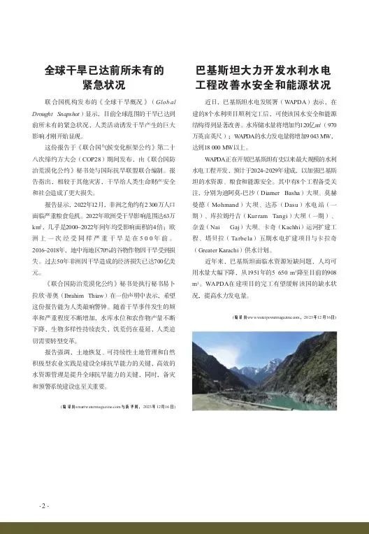 近年来,巴基斯坦面临水资源短缺问题,人均可 用水量大幅下降,从1951年的5 650 m3降至目前的908 m3。WAPDA在建项目的完工有望缓解该国的缺水状况,提高水力发电量。