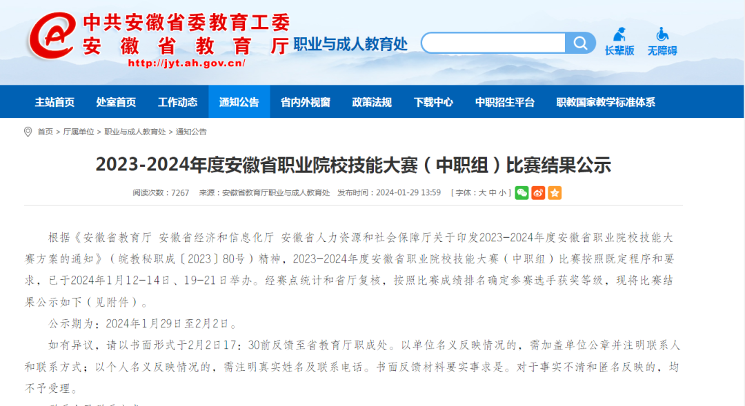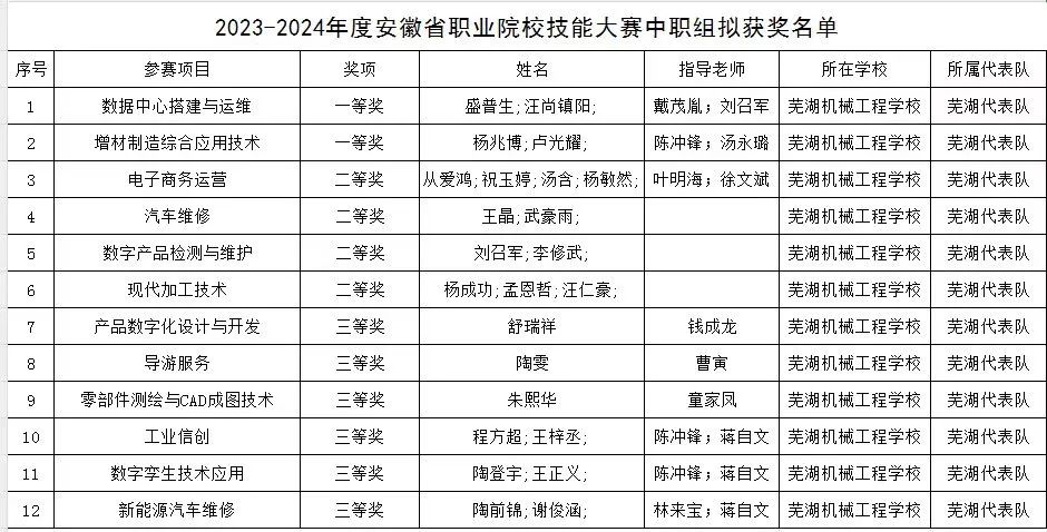 在刚刚公布的“2023-2024年度安徽省职业院校技能大赛(中职组)比赛结果公示”中,我校代表队凭借出色的表现和精湛的技艺,在众多选手中脱颖而出,在十二个比赛项目中获奖,其中一等奖2项、二等奖4项、三等奖6项。此次大赛旨在提高全省中职院校的职业技能水平,促进技能人才队伍建设,为我省产业发展提供有力的人才保障。