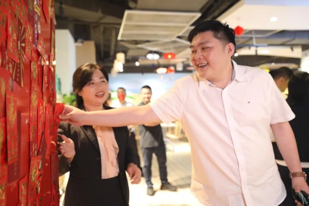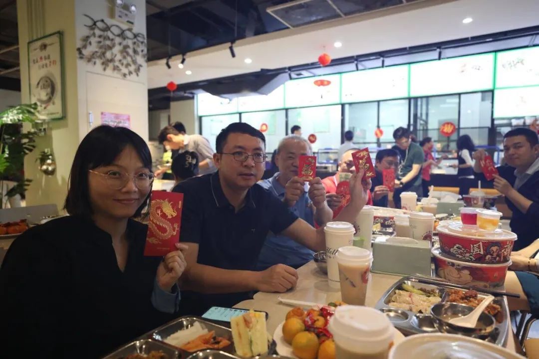 步入海垦集团职工食堂,288个装有现金、糕点券、酸奶券的“幸运红包墙”引来了用餐员工的一阵阵欢呼,吸引着大家争先排队,希望能抽取开工好彩头,开启一年的好运气。