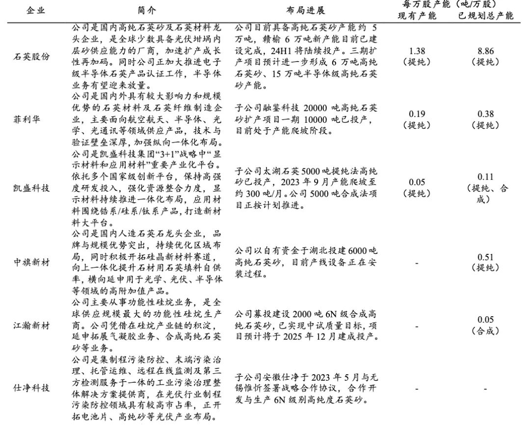 此外,提纯工艺是高纯石英生产中的一大壁垒,而纯度并非唯一考量因素。矿源品质不佳对提纯工艺提出了更高要求。不同行业对高纯石英的质量要求各不相同,其质量与杂质含量之间的关系并非简单线性,而是取决于杂质的具体工艺矿物学特征。因此,提纯工艺需要针对杂质特征进行适配。我国在3N~4N中低端高纯石英产品领域已实现国产化,4N5级别产品也基本达到国产化水平。在更高端的4N8级别及以上产品方面,由于矿石原料品级和提纯技术的限制,目前仅有个别头部厂商具备生产能力。随着2024年扩产计划的落地,外层砂可能出现过剩并冲击中层砂市场,但内层砂由于资源端和加工端的壁垒较高,预计仍将主要由尤尼明、TQC、石英股份等少数企业供应,增量有限,短期内难以改变市场集中格局。受电网容量不足、风光消纳问题以及经济下行风险等因素影响,2024年全球光伏行业需求增速可能放缓,预计增速在20%左右。美国尤尼明公司在石英矿原料品质和石英砂提纯技术方面均处于行业领先水平,是全球少数能够批量供应半导体用高纯石英砂的领军企业之一。近年来,在产业政策的支持和扶持下,国内产业链投资正在加速进行,已有石英股份、江苏阳山硅材料科技有限公司等企业实现了高纯度石英砂的生产并供应市场。与海外供应商相比,我国在高端产品、产品品种、质量稳定性以及生产规模等方面仍存在一定差距。