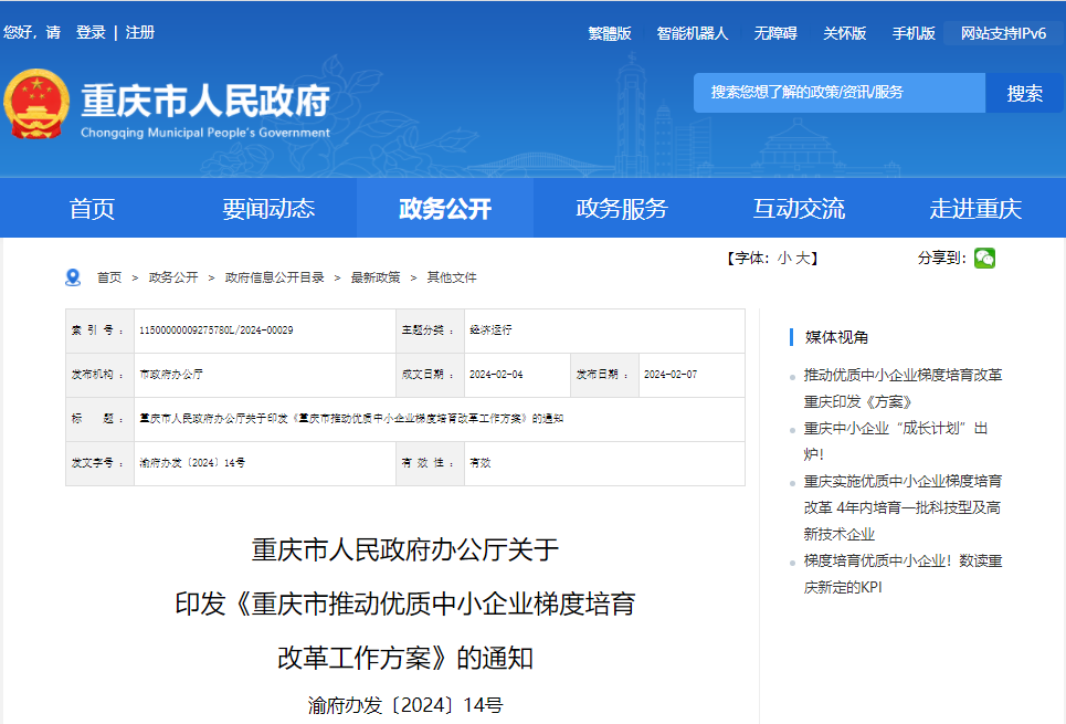 建设“33618”现代制造业集群体系,实施“416”科技创新战略,中小企业均是“主力军”。日前,市政府办公厅印发《重庆市推动优质中小企业梯度培育改革工作方案》,提出通过实施优质中小企业梯度培育改革,着力培育一批有特点的中小企业。