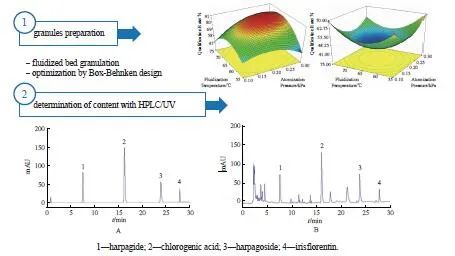 关键词:射银咽炎颗粒;流化床;Box-Behnken 设计;绿原酸;哈巴苷;哈巴俄苷;次野鸢尾黄素