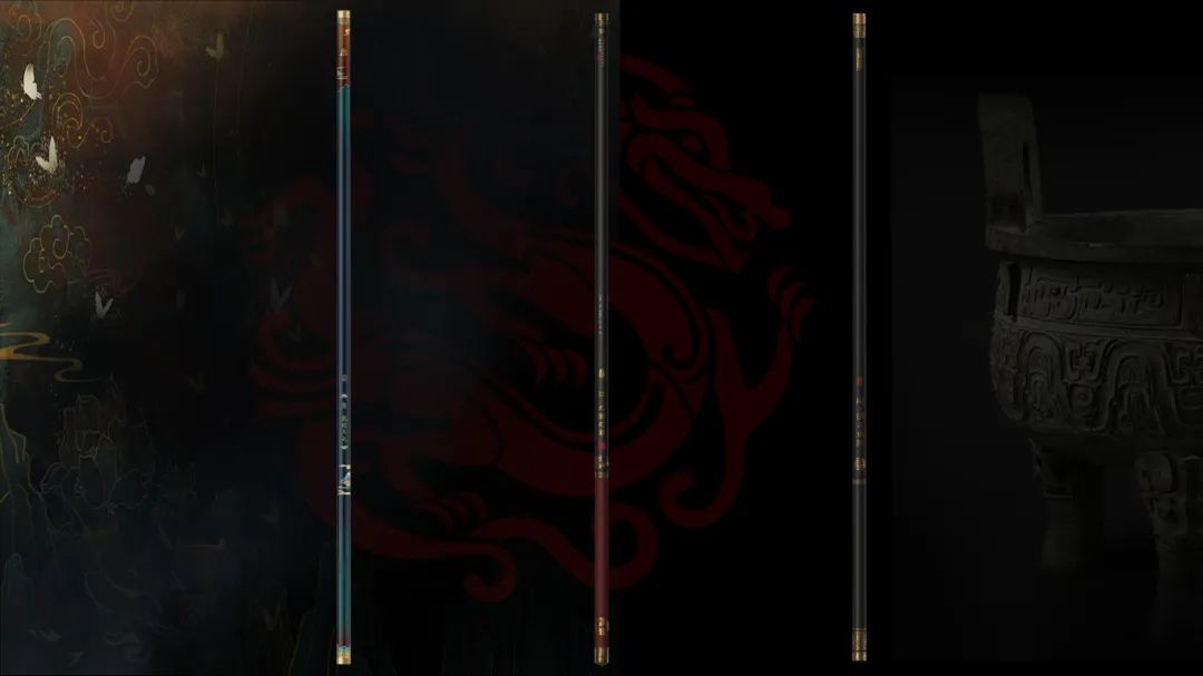 王朝系列“周”是一款手感超轻的大综合竿,28偏19调,素材上选用了40T+30T+46T高吨位碳布,8层内外逆丝小布号卷制,强度更高,在使用时竿子会有更轻的持感,作钓时控鱼更加自如。手把节采用哑光漆涂装搭配3D打印工艺,整竿唯美大气,立体感十足。