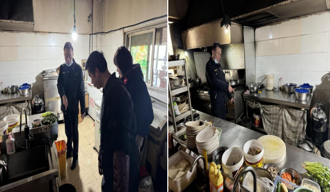 上榜理由:后堂环境卫生差,“防虫、防蝇、防鼠”落实不到位,设施设备未定期清洗维护,从业人员未规范穿戴工作衣帽,未落实进货查验索证索票制度。