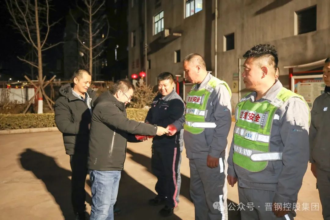 岁末天寒情意暖,殷殷关爱沁人心。2月9日,农历除夕之夜,晋钢控股集团副总经理苏世杰,销售总监唐元海、采购总监潘屹东等领导代表集团慰问坚守在一线的员工,为他们送上新春的问候和包裹着浓浓爱意的红包。