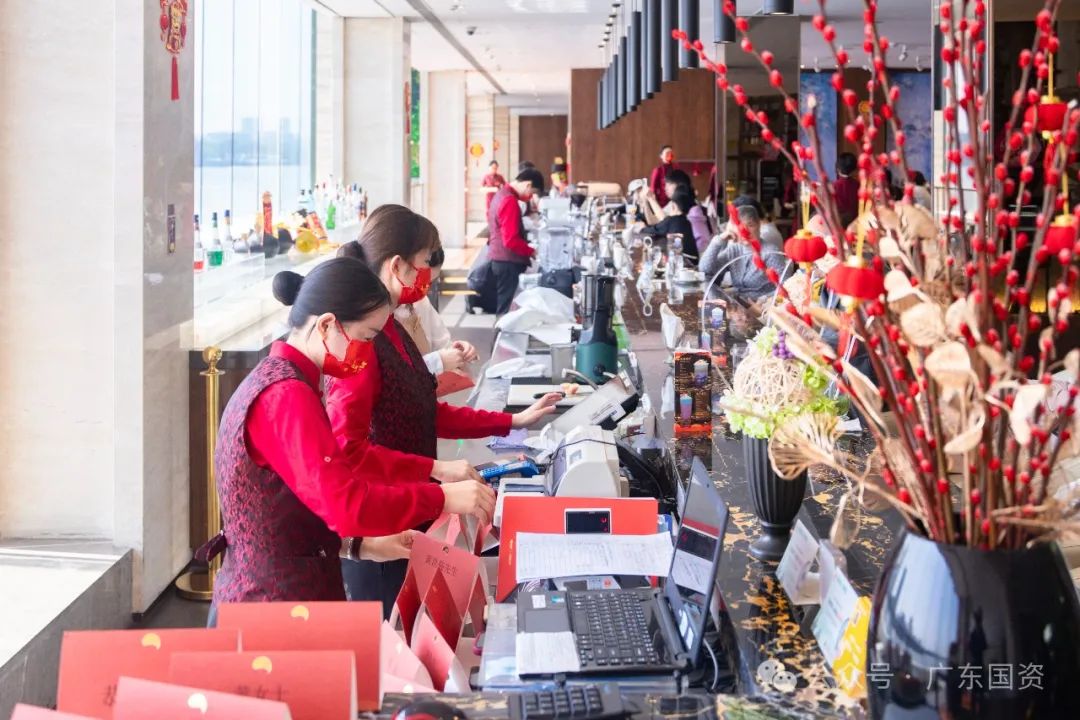 初二至初五期间,旅游控股集团旗下众多酒店几近满房,入住率较2023年同期均有不同幅度增长,大部分酒店平均入住率达九成以上。其中,白天鹅宾馆连续九天满房,广东迎宾馆连续七天满房,广东胜利宾馆、五羊城酒店、广东大厦、华厦大酒店、广东温泉宾馆、梅州白天鹅迎宾馆等多家酒店平均入住率高达95%以上。白天鹅宾馆营收更是创历史新高,整个春节档期客房餐饮日日满房满座人气爆棚。