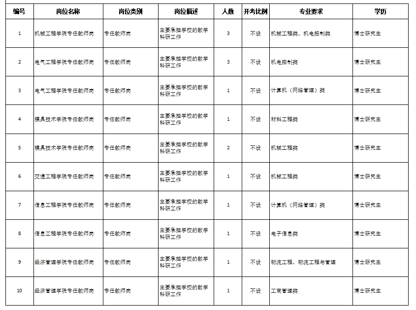 常州机电职业技术学院是省教育厅主管的全额拨款事业单位,位于常州市武进区鸣新中路26号。为更好地选拔优秀适岗人才,充实人才队伍,优化师资结构,常州机电职业技术学院现面向社会公开招聘优秀人才。根据《江苏省事业单位公开招聘人员办法》等规定,现将有关事项公告如下: