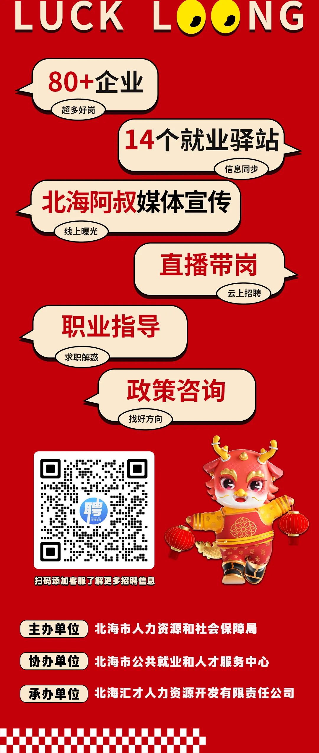 本次大型招聘会,企业不仅能在招聘会中寻找自己心仪的人选,还能获得北海阿叔媒体社群的宣传,可以更好地向求职者展示企业的实力和特色,求职者这也可以更好地了解企业招聘信息。