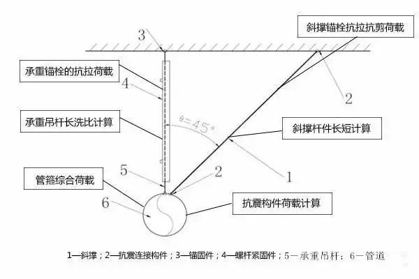 图五抗震支吊架受力荷载分析图