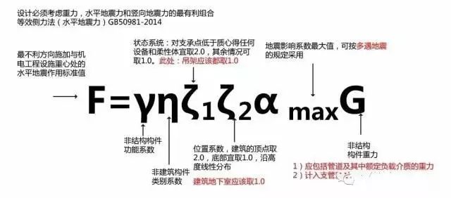 根据《国家建筑机电工程抗震设计规范》水平地震作用计算公式计算设计荷载,抗震计算(等效侧力法):