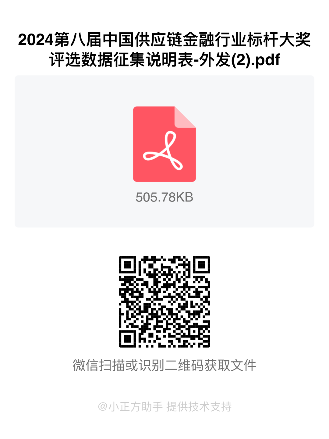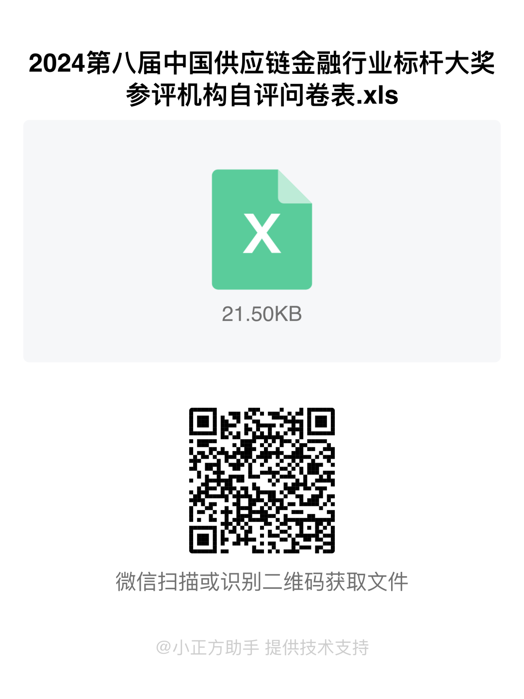 有意向申报第8届中国供应链金融“行业标杆大奖”的企业或机构,请扫下方二维码获取“候选企业数据征集说明”与“申报机构自评问卷表”