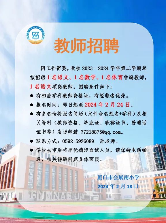 厦门市会展南小学教师招聘