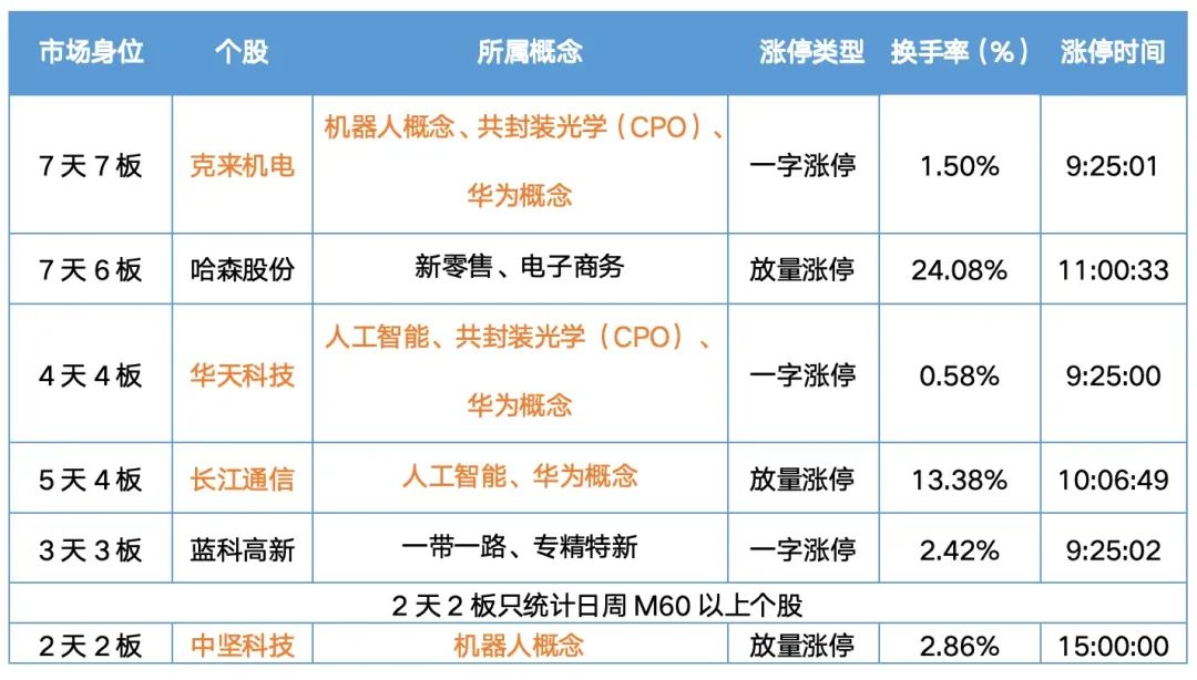克来机电、万兴科技、安诺奇、中际旭创、天孚通信、云创数据。