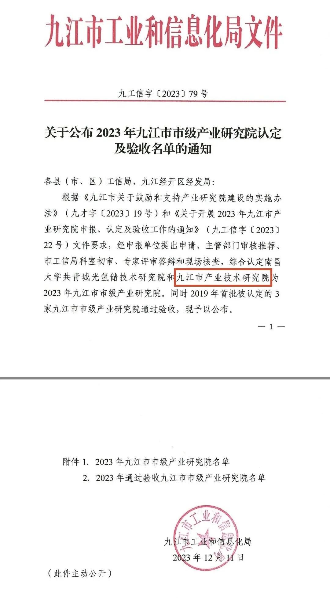 九江市工业和信息化局近日公布,经过严格综合认定,九江市产业技术研究院荣膺2023年九江市市级产业研究院的称号。