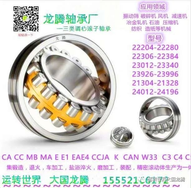 山东省龙腾轴承厂集锻造,退火,车加工,盐浴淬火,磨加工,装配,精密滚动体生产为一体,专业设计生产各 系列高速、低噪音、长寿命调心滚子轴承。噪音、长寿命调心滚子轴承。