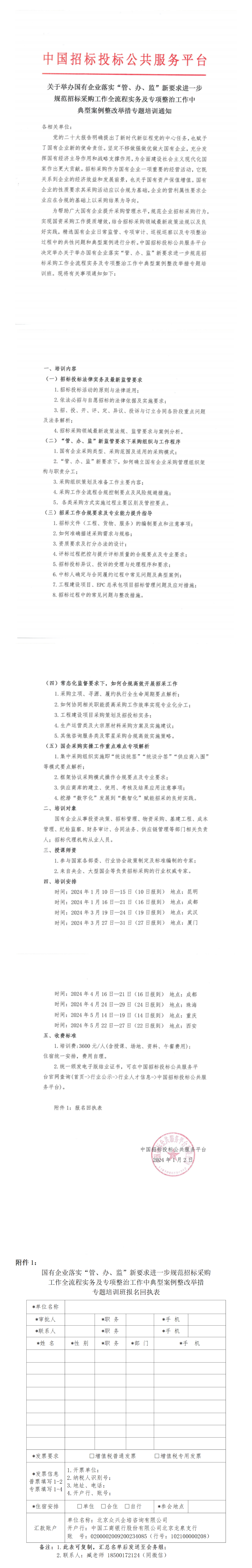 目前平台线下两大课程侧重国企招标采购、政府采购。内容涉及投标技巧培训、业主的项目管理、招投标合同管理、《标准招标文件》宣贯培训、招标采购实务培训、招投标纪检监察人员培训、《招标投标法实施条例》、《政府采购法实施条例》宣贯培训、行业协会招投标规范标准培训等,目前服务的客户涉及各个领域几千余家企业。主要是来自央企、地方国企及其二三级企业、省市县机关单位、公共资源交易中心、招标代理机构、高等院校、医院、科研机构等。