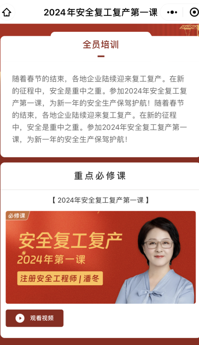 2024年复工复产培训“云课堂”已经上线