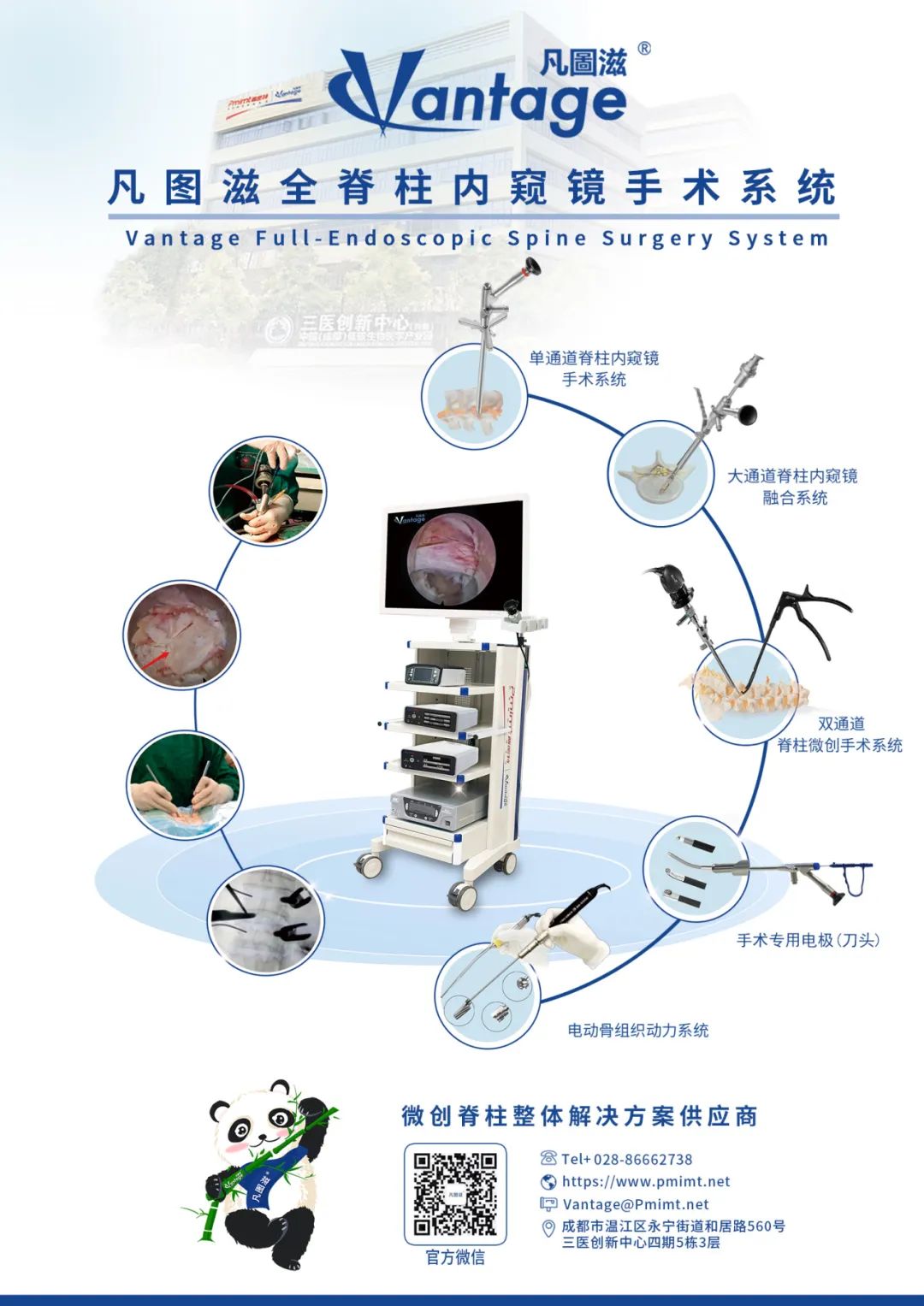成都向驰医疗科技有限公司成立于2018年,总部设在成都,是一家微创脊柱外科整体解决方案供应商,为临床脊柱外科医生提供专业服务和技术培训。公司主要产品包括:全脊柱内镜手术系统、凡圖滋双通道脊柱内镜手术系统、微创固定融合手术系统、手术动力系统、恒晟智慧脊柱云系统等。