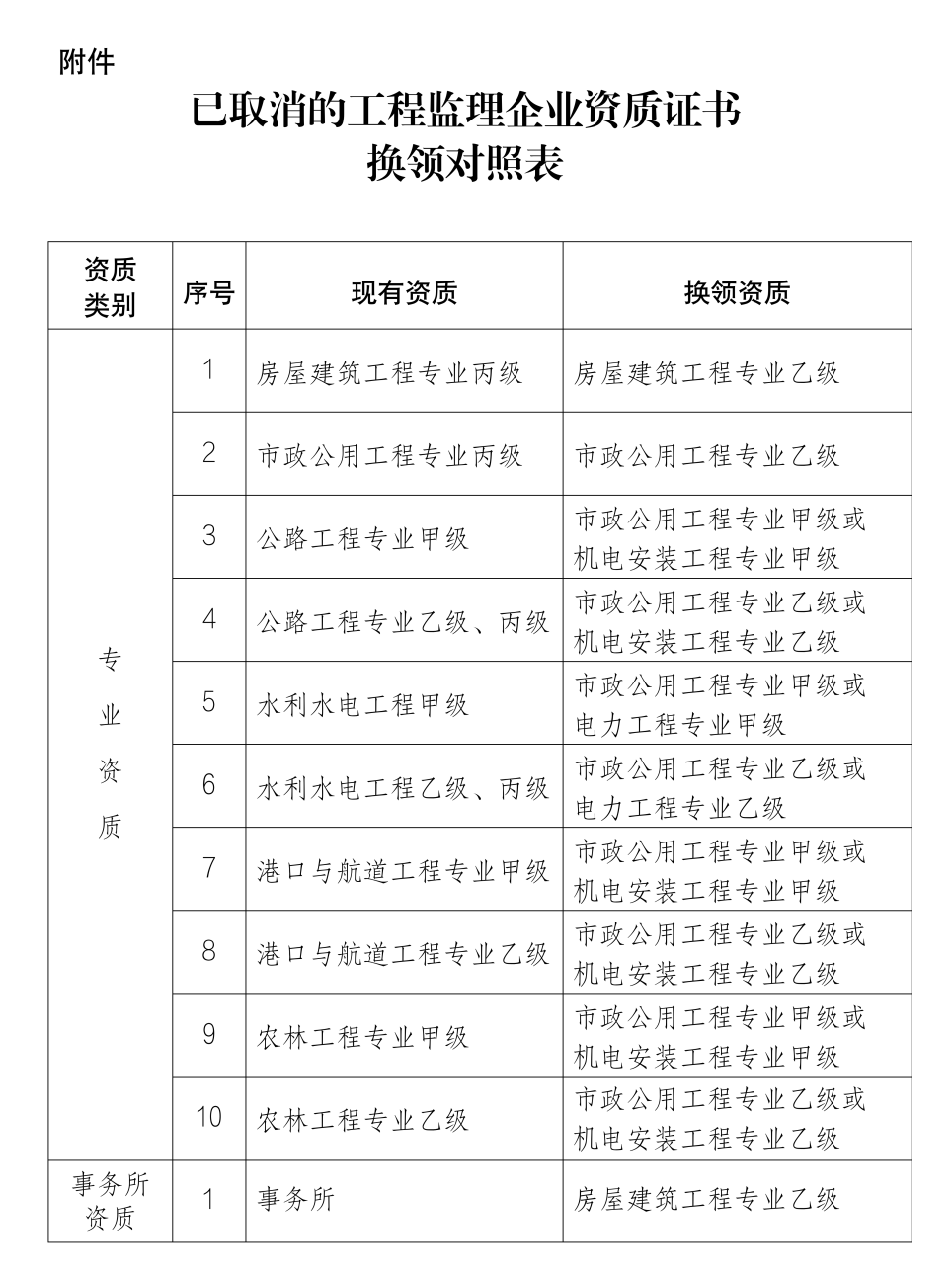 附件:已取消的工程监理企业资质证书换领对照表.docx