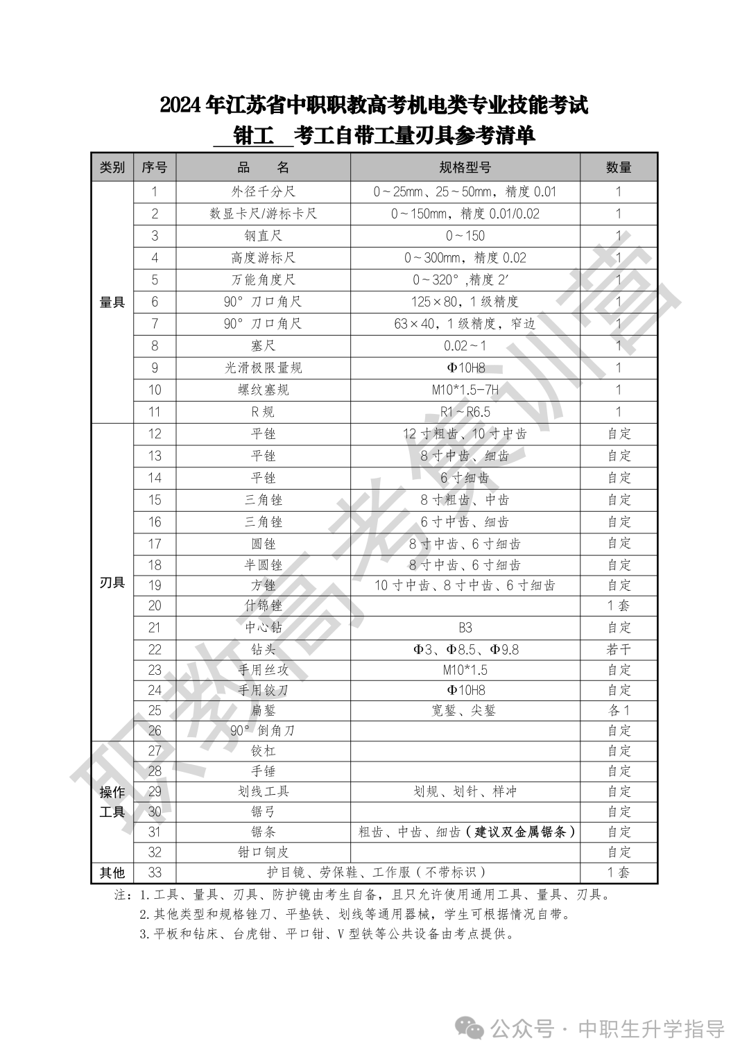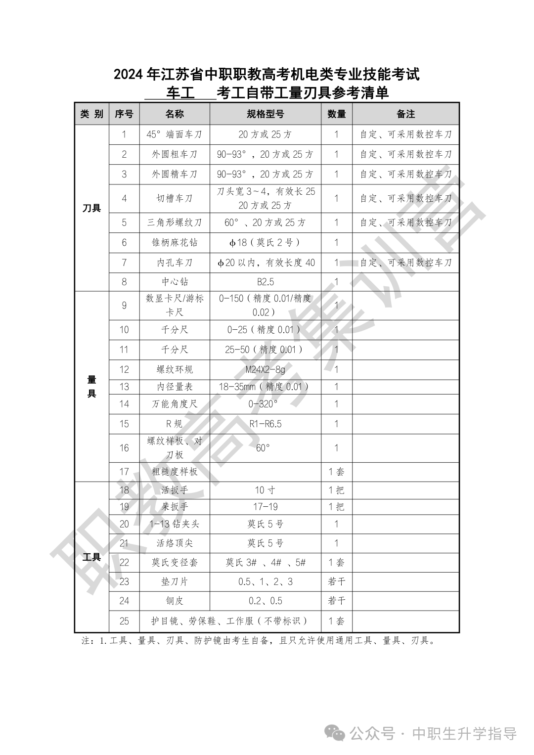 2024年江苏职教高考机电类专业技能考试自备工具参考清单