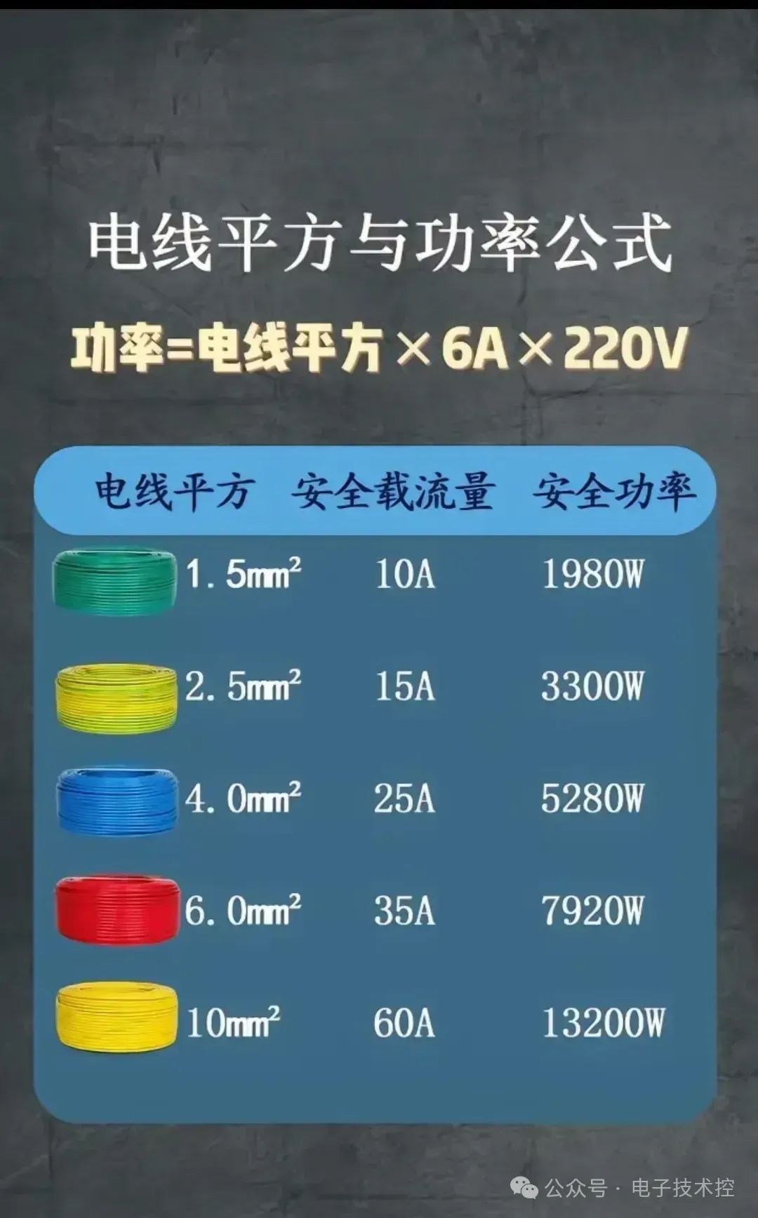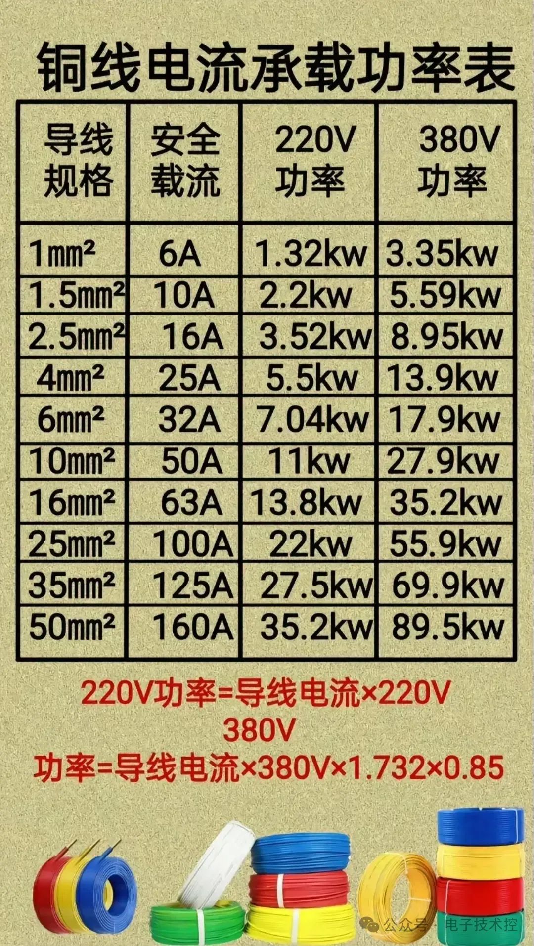 28、电线平方与功率公式
