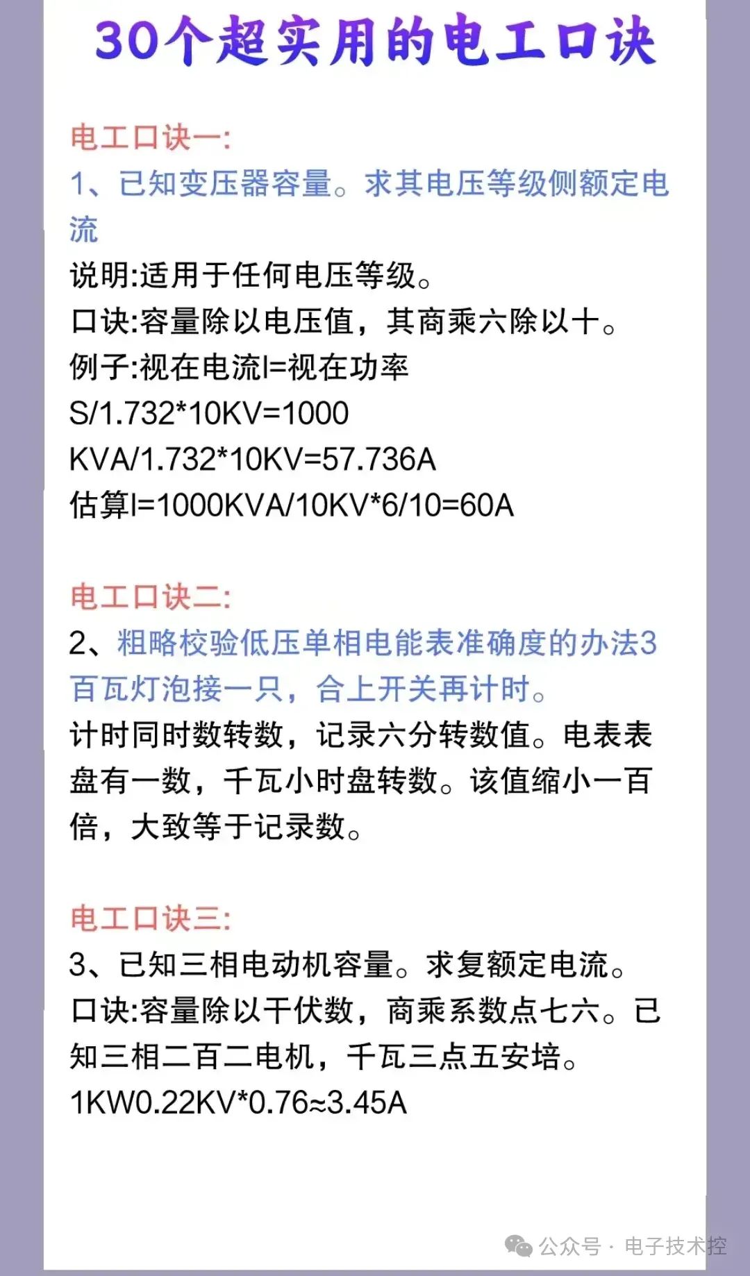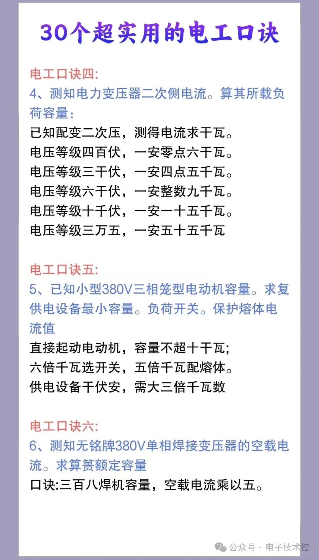 8、30个超实用的电工口诀二