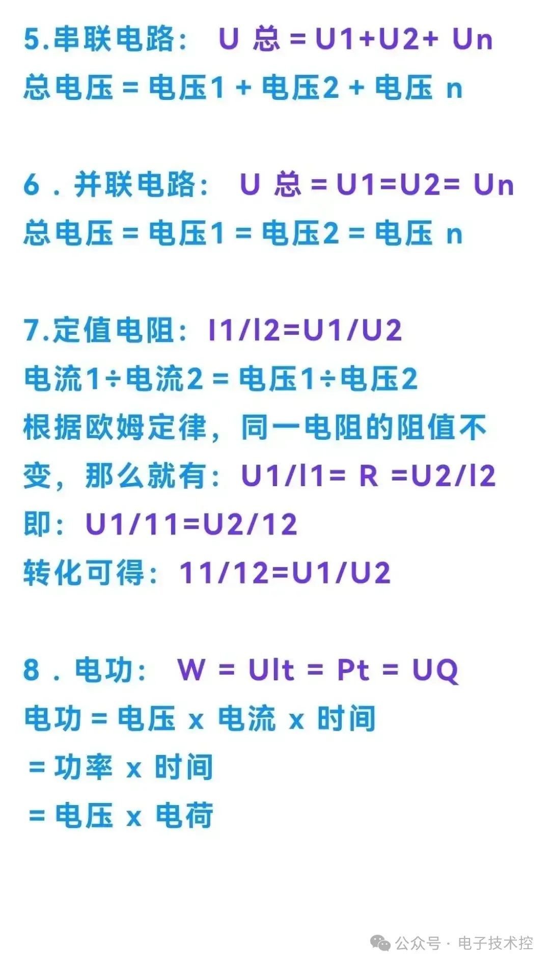 1、电工必学的基本公式一