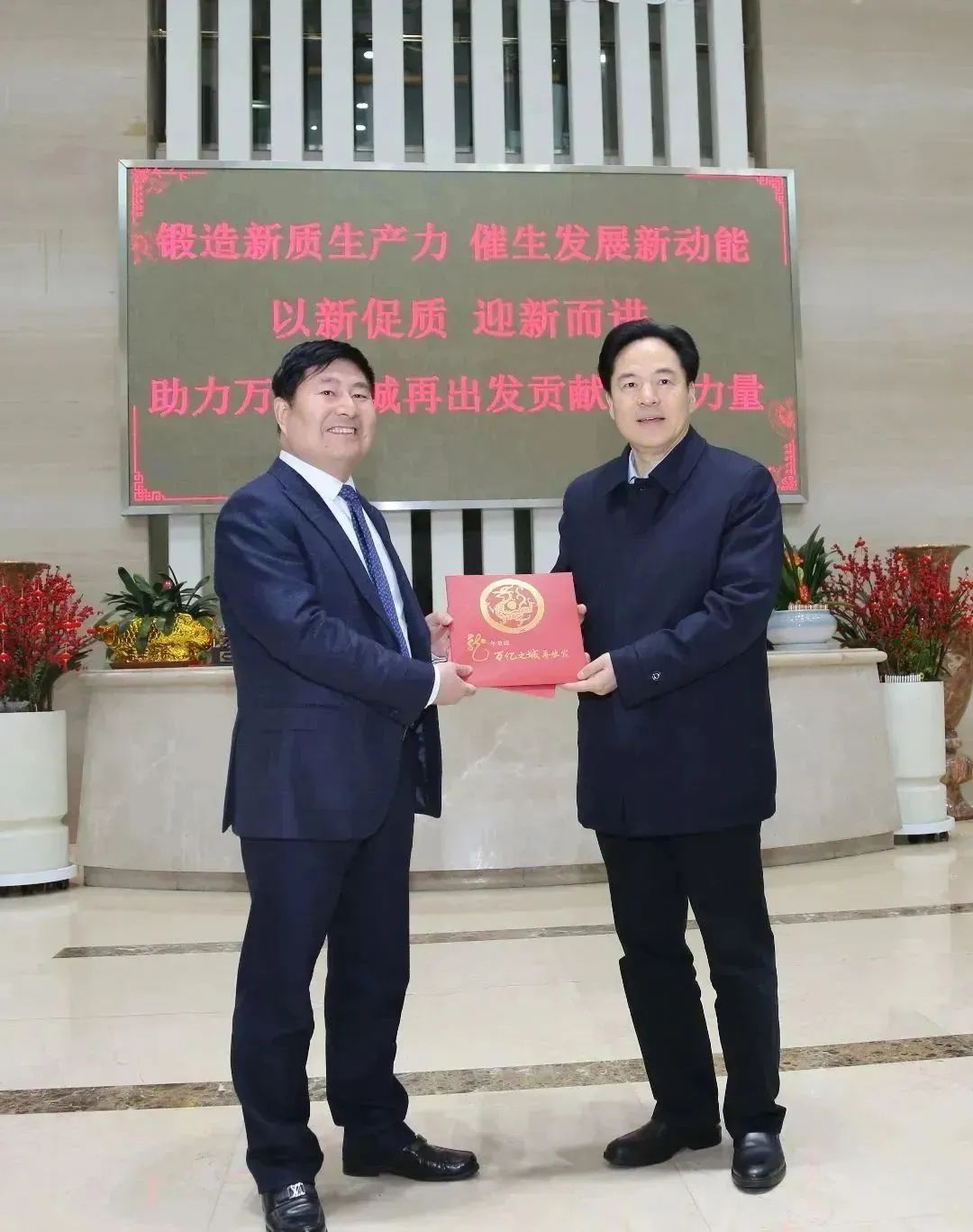 2月20日,市委书记陈金虎带队走访今创控股集团,向集团致以新春祝福,并为集团党委书记、董事长戈建鸣送来了“万亿之城纪念封”和“常商服务卡”。市领导杨芬、杭勇、韩九云等,经开区领导丁一以及市商务局、政务办、工商联等主要负责人参加活动。戈建鸣、金琰、左小鹏、高锋等集团高层领导热情接待了陈书记一行。