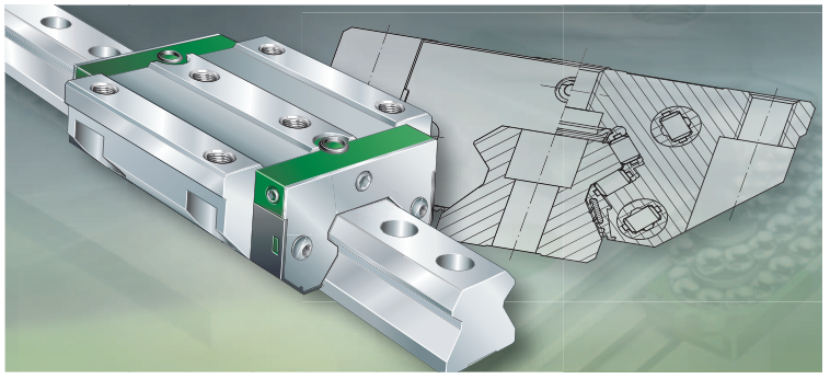 滑块从各个方向由密封唇,间隙密封,上部密封条和下部双密封条完全封闭起来,图 2。这些密封单元能在苛刻的环境条件下保护滚动体免受污染。两端的双唇密封将润滑保留在滑块内。如果污染特别恶劣,请联系我们。
