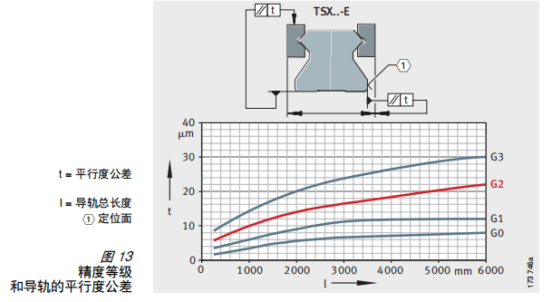 精度等级,直线循环滚柱轴承及导轨组件的精度等级范围为 G0 至 G3,图 13。标准等级为 G2。