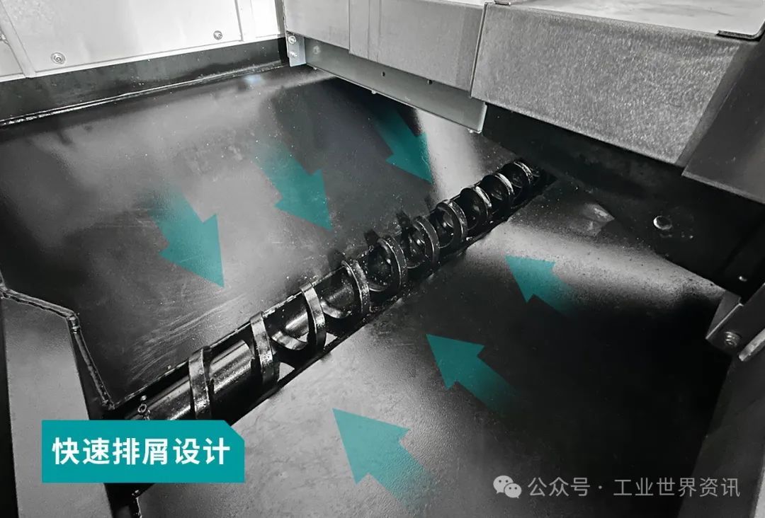 7.排屑标配两侧斜坡后排,水箱后置设计,人性化,高效率。