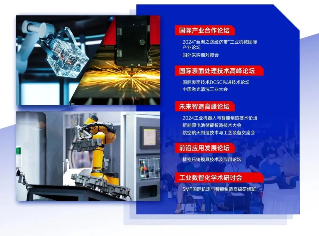 展会现场除“一带一路”主题大会,还将召开上海国际表面技术DCSC先进技术论坛、2024工业机器人与智能制造技术论坛、新能源电池储能智造技术大会、精密压铸模具技术及应用论坛、SMT国际机床与智能制造高级研修班等前瞻会议,以技术、学术、应用等方向为切入点,全方位解读工业产业发展现状。