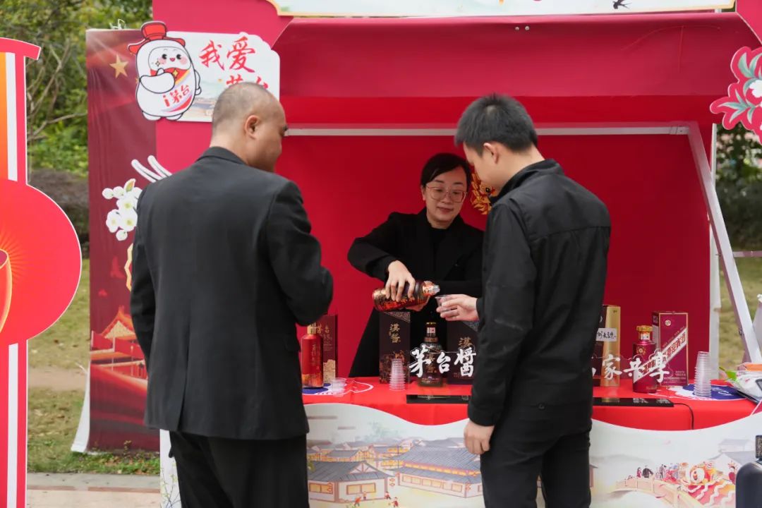 工作人员热情相邀往来市民品鉴茅台家族产品,宣传茅台文化,并邀请他们参与茅台酒的品饮活动,为消费者带来“美产品、美文化、美服务”的新年美意。