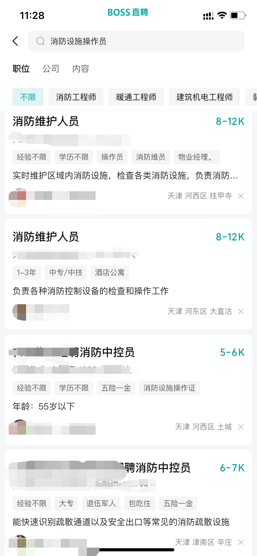 消防设施操作员:中专及以上学历