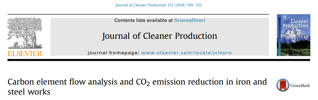 Zhang,Q.,Li,Y.,Xu,J.,Jia,G.Carbon element flow analysis and CO2 emission reduction in iron and steel works[J]Journal of Cleaner Production,2018, doi:org/10.1016/j.jclepro.2017.10.211