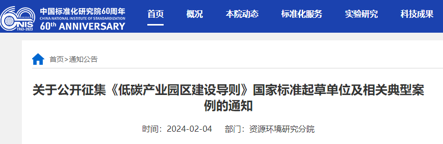 关于公开征集《低碳产业园区建设导则》国家标准起草单位及相关典型案例的通知