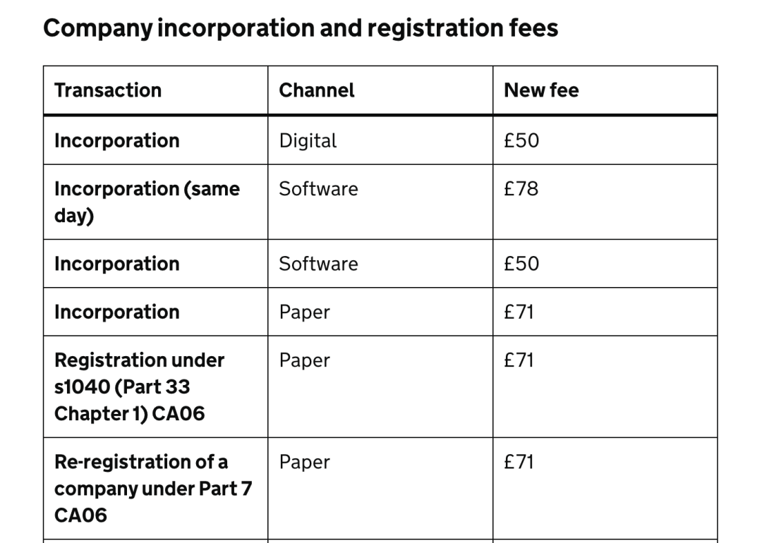 根据英国政府官方网站提供的信息。这一变化是对英国公司法的重要更新,旨在更新和调整公司注册和其他相关服务的费用。在此之前,英国公司注册费用的当前标准已经公布。