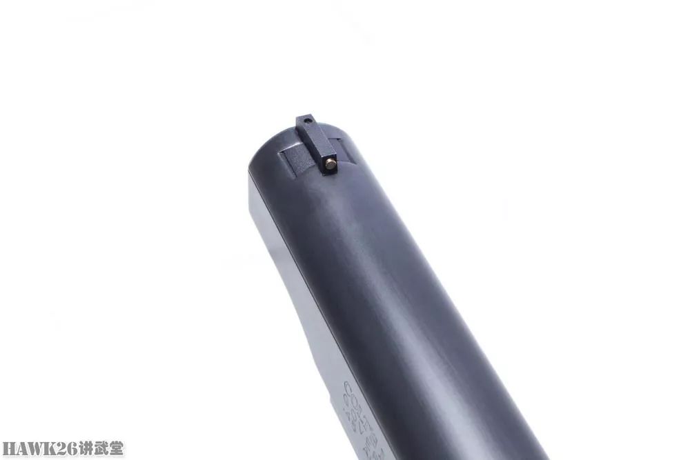 套筒左侧的铭文,有经典的柯尔特骏马商标。套筒侧面与顶部弧形的衔接处,有一条贯穿首尾的浅槽,在不经意的细节之处提升了这支手枪的颜值。
