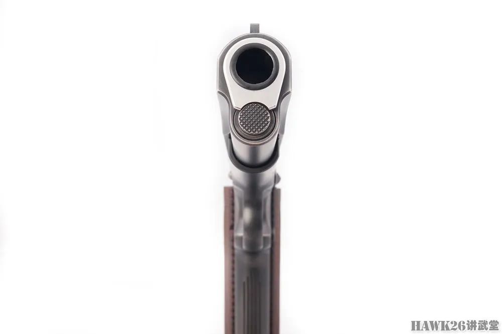 枪口帽进行了改进,这样拉丝银色的枪口帽非常漂亮。NH比赛级枪管前部有锥形切削,防止磕碰膛线影响精度。弹膛和供弹坡进行了精心打磨和抛光,以保证极高的可靠性。