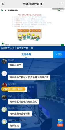 冶金等工业企业节后安全检查,要查哪些重点部位?隐患排查的方法有哪些?节后复工风险点在哪儿?……2月20日上午,南京市应急管理局通过线上直播方式,组织全市冶金等工业企业开展节后安全生产开工“第一课”。据统计,累计签到参学企业1.5万余家,在线学习人数近8.5万人次。