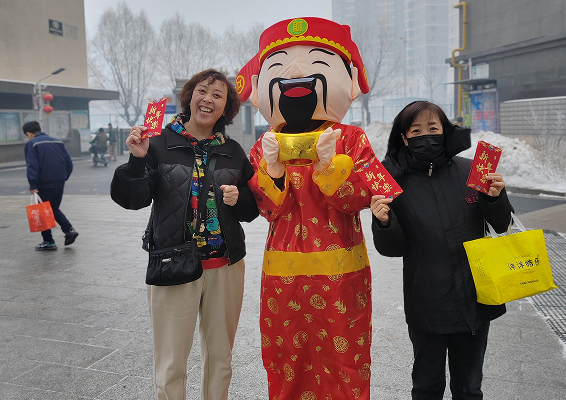 甲辰年大年初一当日上午,瀚星物业同仁变身装扮成“财神”,向出行的业主们送上拜年“红包”,红包内是一枚枚“厚重”的巧克力金币,这是瀚星物业员工的对业主热情而真挚的新年祝福。