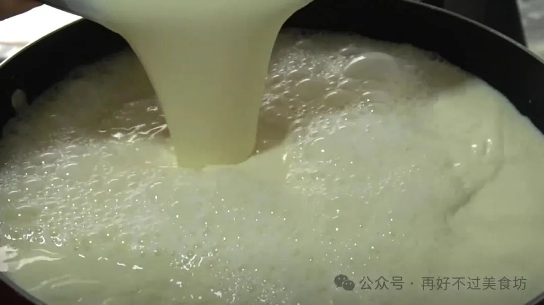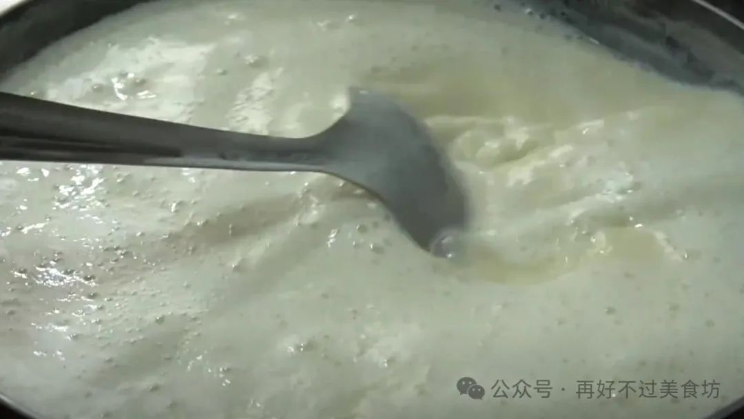 5、刚开始加热的时候,表面的气泡会非常多,不用管它,继续加热,一直把豆汁熬到表面已经几乎没有气泡,而且豆香味特别浓郁的状态,即可关火。