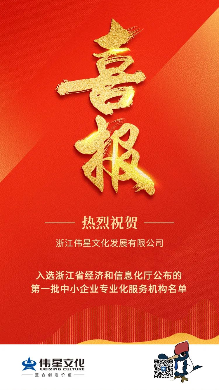 日前,浙江省经济和信息化厅公布第一批中小企业专业化服务机构名单,浙江伟星文化发展有限公司位列其中。
