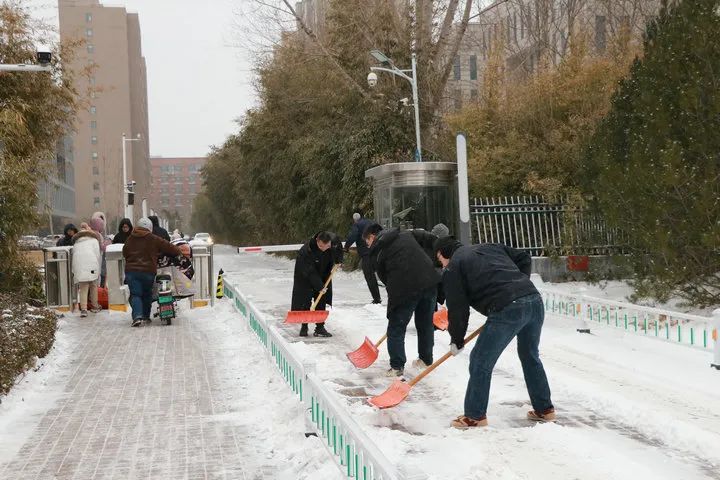 经过紧张奋战,园区内外及周边的道路积雪在伙伴们上班时间之前被迅速清理,抢出一条畅通之路。