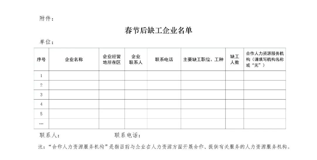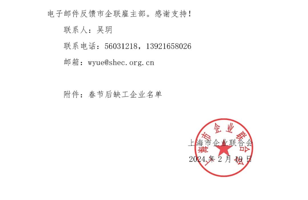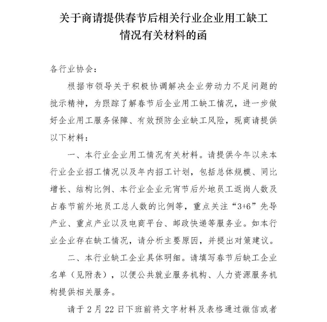 【通知】关于商请提供春节后相关行业企业用工缺工情况有关材料的函