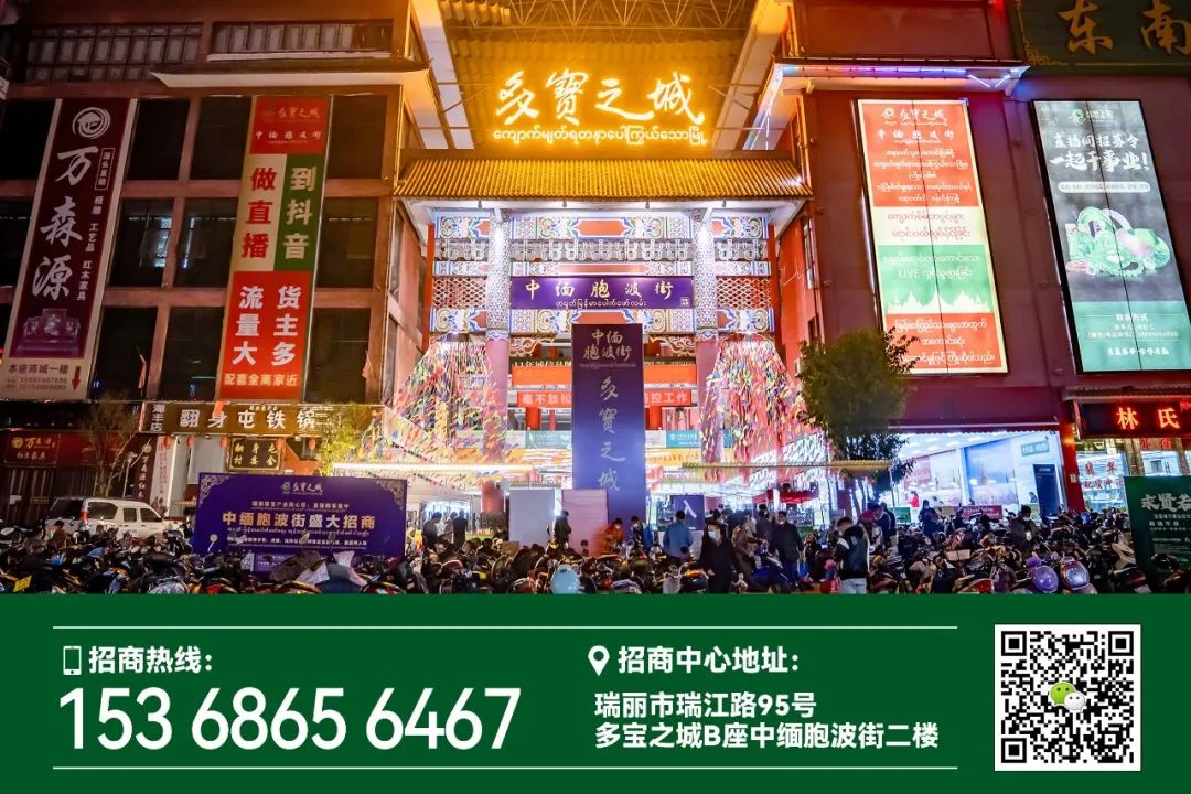 目前,瑞丽正在积极打造“中缅翡翠源头第一站”“珠宝玉石直播第一城”两张产业名片,作为刚在2023年获评“省级直播电商示范基地”和“诚信经营 放心消费示范市场”两项高含金量荣誉的多宝之城来说,有很大机会最大限度承接两张产业名片带来的流量转化。