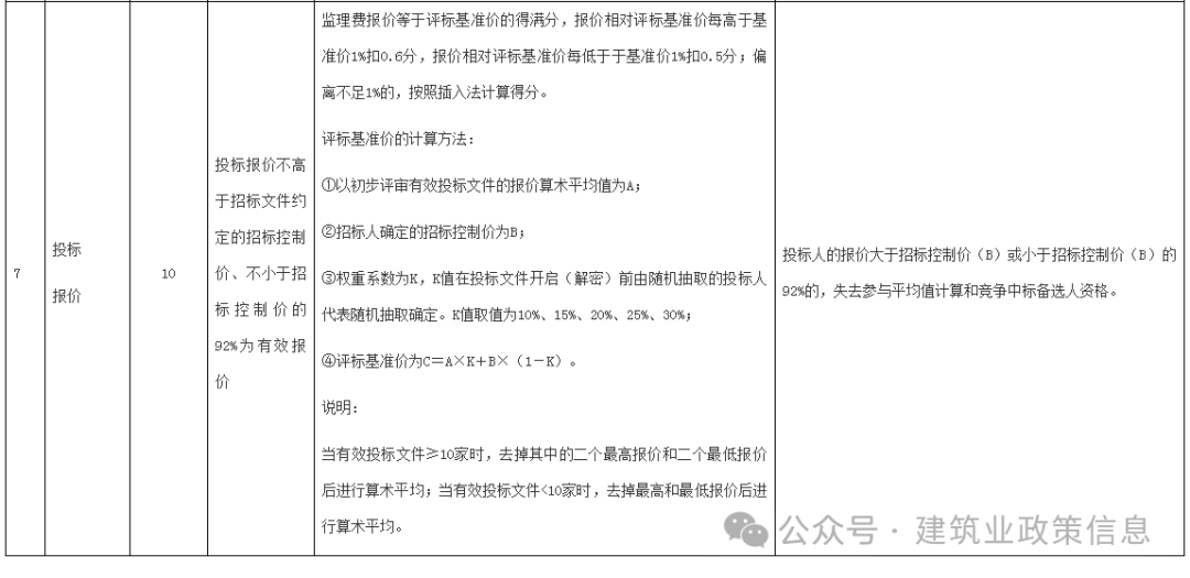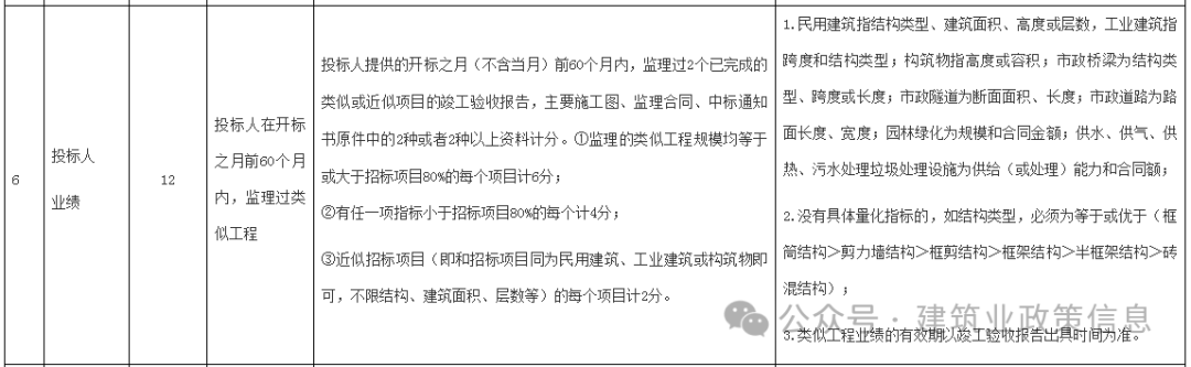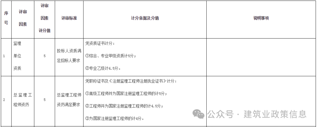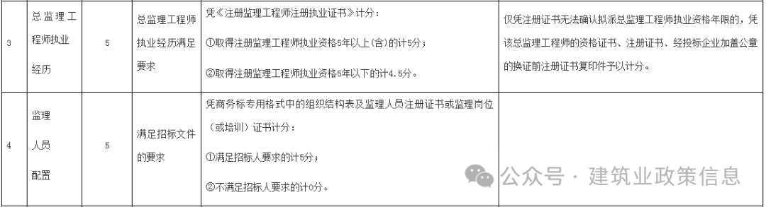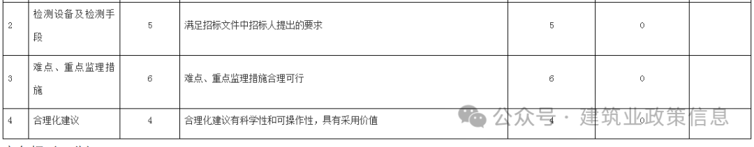 招标工程无某项评审因素的,该评审因素计0分。(例如:招标文件中对难点、重点监理措施未提出要求的)。
